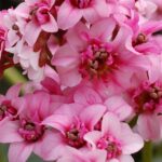 Bergenia ‘Dragonfly Sakura’ has double to semi double ‘cherry blossom’ pink flowers held on robust spikes against an evergreen foliage display of darkest black evergreen foliage. Bergenias are very useful perennials not only for their leathery hardy form but also for their very early spring flowering display. Bergenia ‘Dragonfly Sakura’ is a new variety of Bergenia which differs from the commonly grown garden Bergenia cordifolia in that it is smaller and forms a tidy clump of narrow leaves which colour attractively to a ‘purple-black’ in cool climates over the winter. Flowers emerge in early spring, are a deep cerise pink double and nicely in proportion to the foliage. Cute and compact.