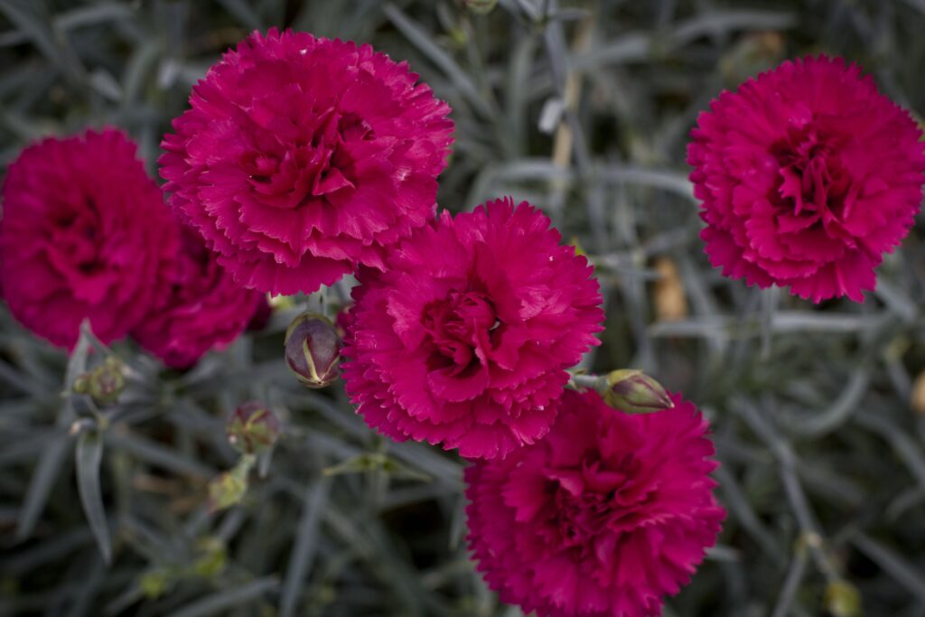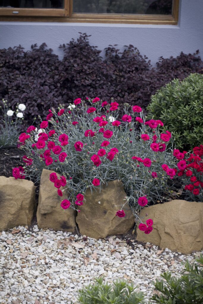 Dianthus ‘Waterloo Sunset’ is a longer stemmed highly fragrant dianthus from renowned UK specialists Whetman Pinks. ‘Waterloo Sunset’ is ideal for picking as a vase flower which will last over an extended period. Masses of bright magenta flowers with a port wine eye smother the plant for a prolonged period from spring to summer. As if the outstanding colour isn’t enough, this dianthus forms a compact clump of blue-green spiky foliage which is attractive in its own right. Magnifi-Scent Pinks’ fragrance make these perennials ideal around entrance ways. Dianthus are sun lovers, at home in a flower border or pot, and quite dry tolerant with the occasional deep watering in summer.