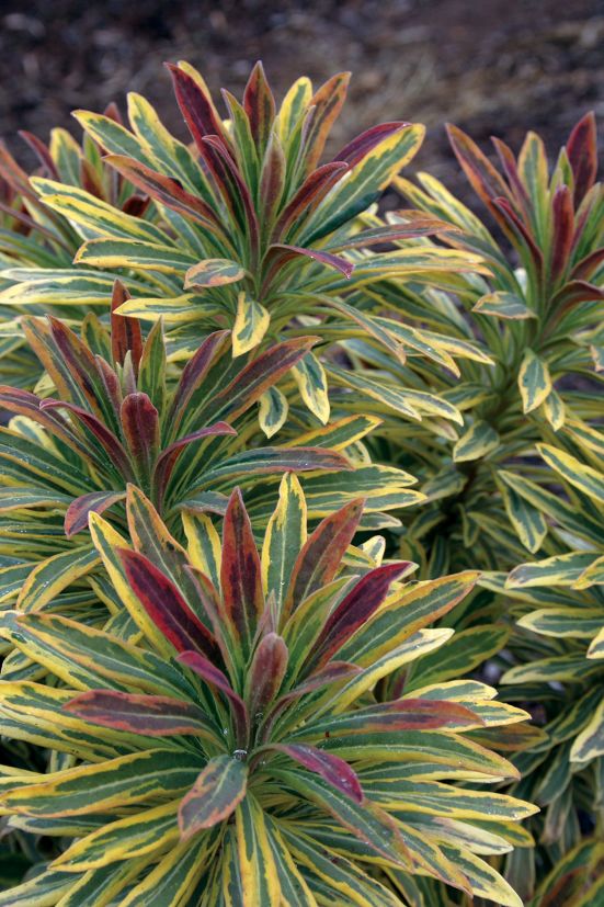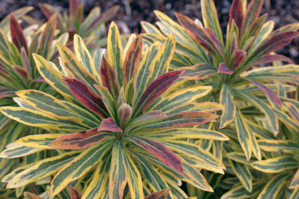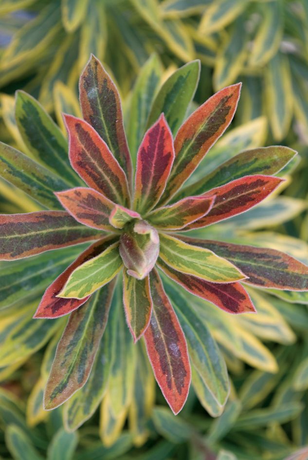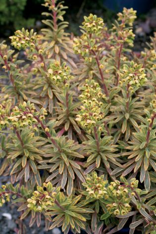 Euphorbia ‘Ascot Rainbow’ will provide year round interest, is hardy and drought tolerant therefore suitable for containers, water-wise or coastal gardens. Suitable for compact courtyard, entrance garden or front of border.