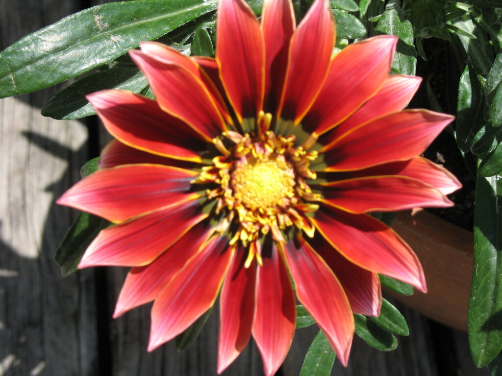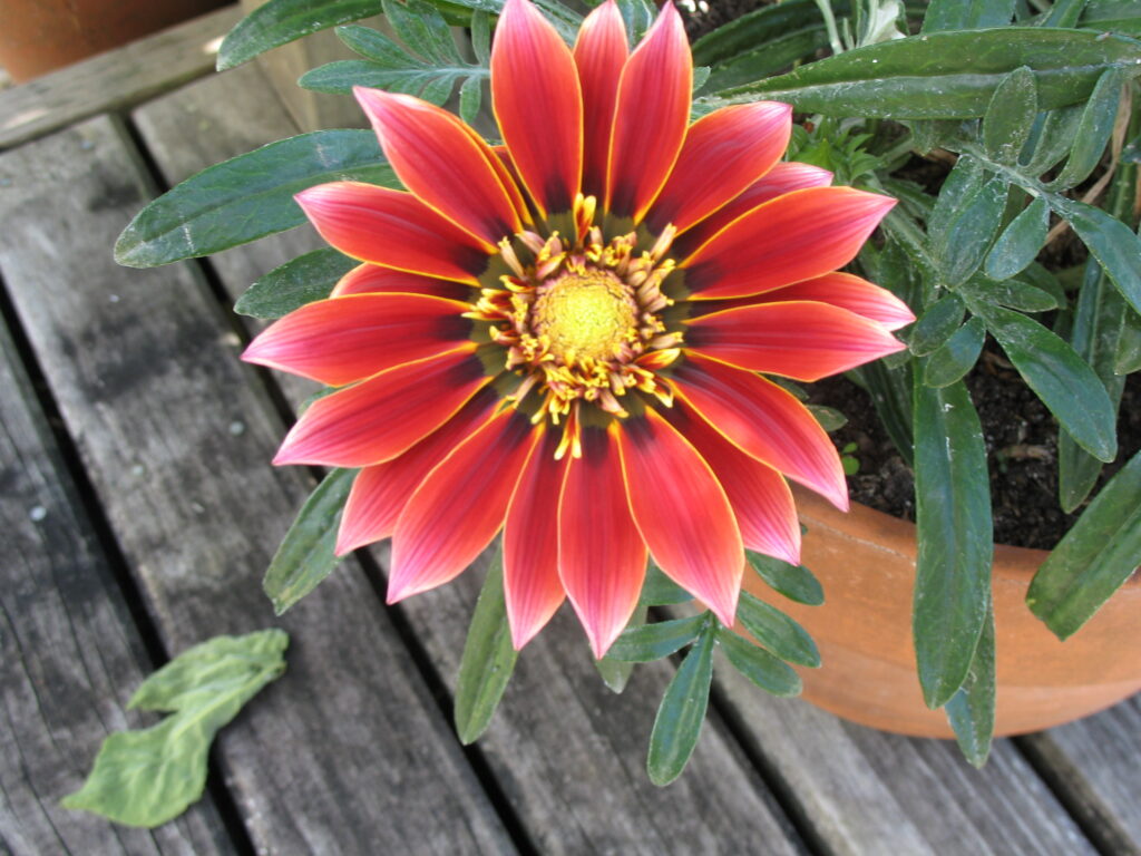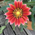 Gazanias are the absolute sublime sun lovers and this massive new flowering Gazania opens to a huge  earthy pink patterned flower in full sun. It will as with all Gazanias tolerate a dry sunny spot and doesn’t require too much watering ie best to let them dry out between waterings. The flowers close when the sun goes then explode open again when the sun reappears. The foliage is lovely too! The cool silvery blue goes so nicely with the warm summer colours. You can divide these in autumn for more plants if wanted. Good in pots as a striking specimen too!