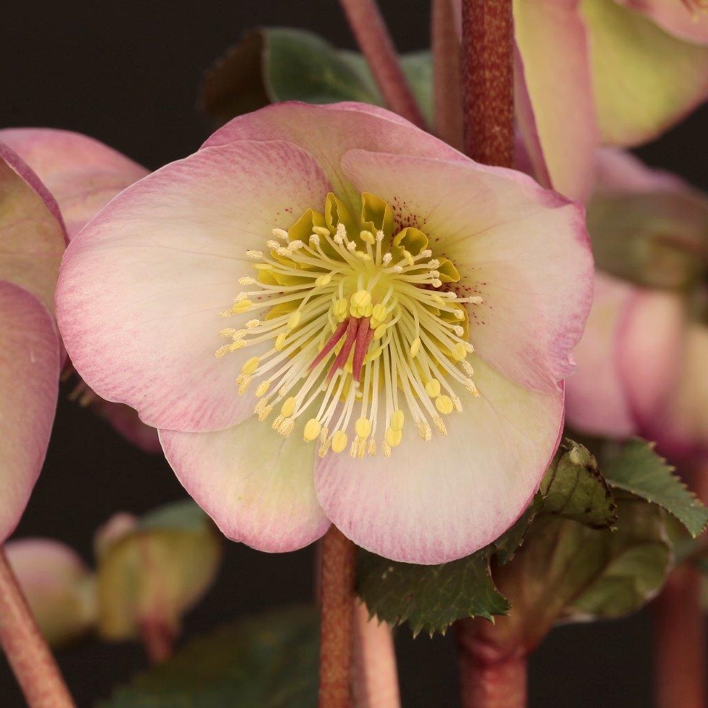 Another delightful Hellebore hybrid with deep green marbled leaves, and as if the foliage wasn’t enough, the fabulous soft pink cupped flowers edged in deeper pink are just what’s needed to brighten up the winter for gardeners young and old.