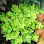 Heuchera ‘Lime Marmalade’ offers a different texture of Lime Heuchera and promises the sheer toughness of Marmalade its parent Heuchera. Grow Heuchera ‘Lime Marmalade’ in part shade to full shade as with all light coloured Heucheras, it should be protected from intense direct sunlight particularly afternoon sun. Avoid over-watering or water logged soils, ensure good drainage with all Heucheras. Water and feed occasionally with slow release fertiliser. Easy care. Hardy. 0.4 x 0.45m