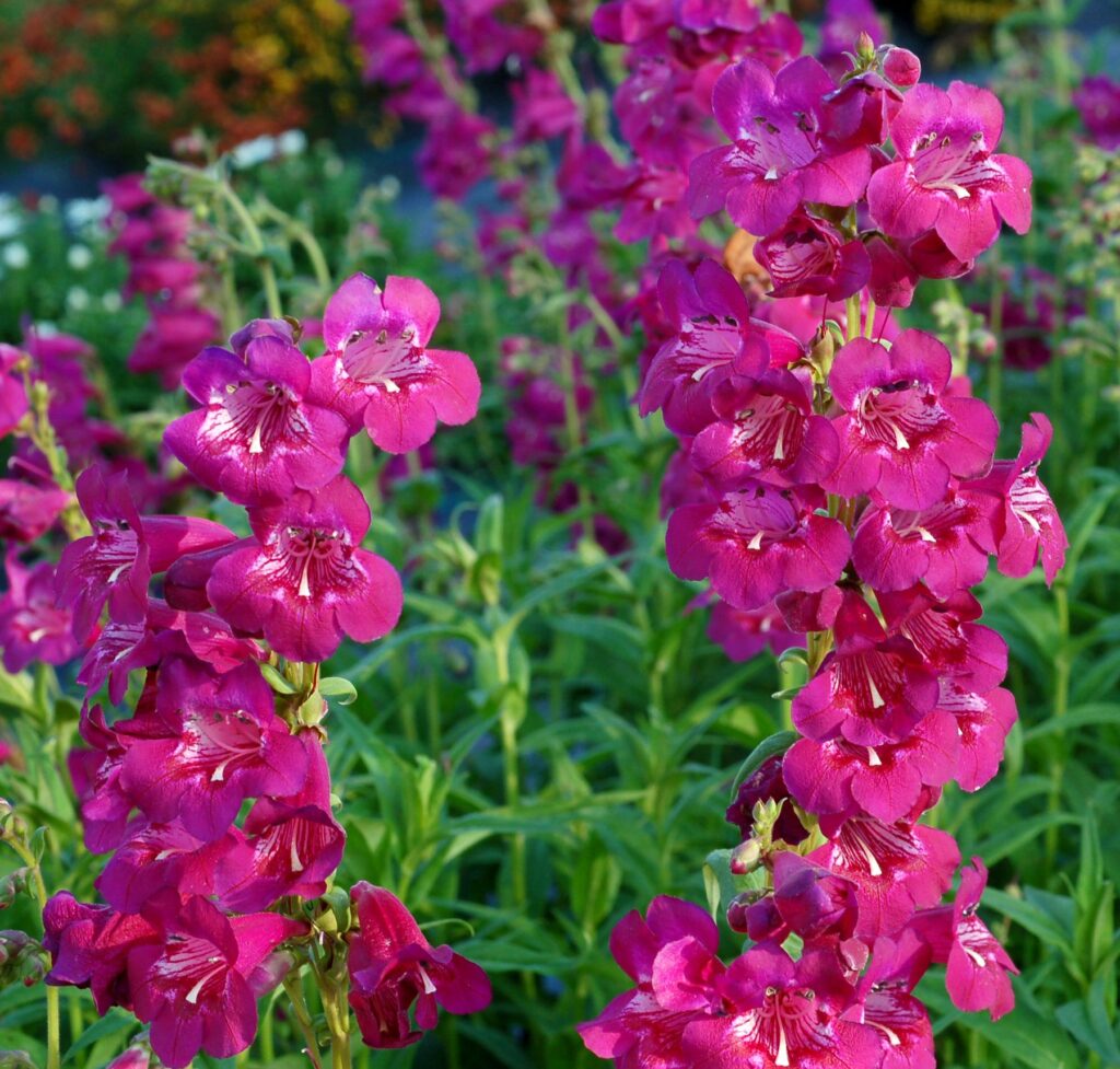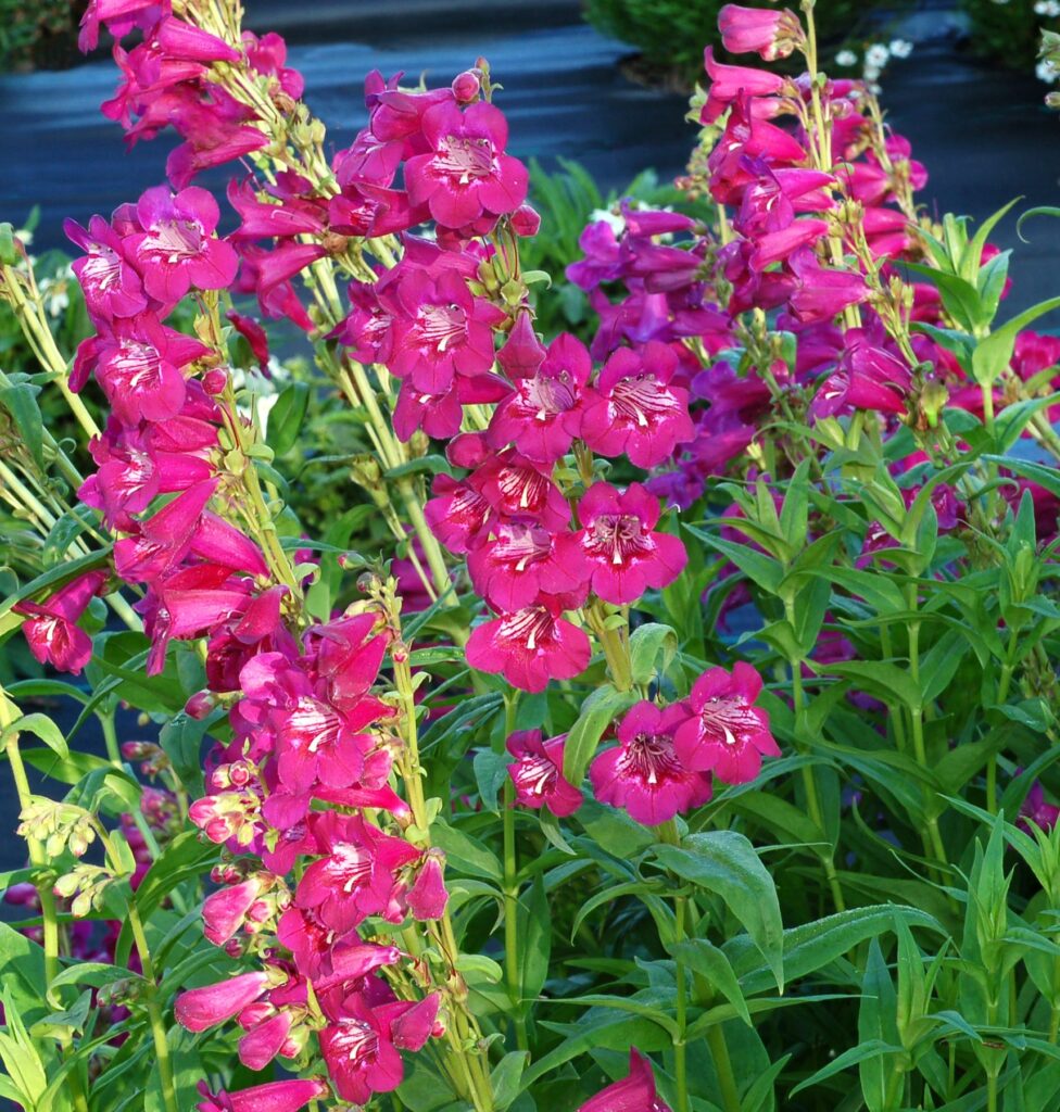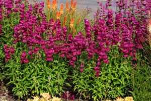 One of the interesting aspects of plant selection is the ability to take a well known and loved variety and breed something new and special, enhancing the traits of the parent! Penstemons are well known and reliable cottage perennials, but take a closer look at the Taffy Series! Penstemon ‘Boysenberry Taffy’ produces large bell like deep berry wine blooms with a smaller white throat, over many months of repeat flowering flushes. Multiple flower spikes appear on a fuller bush than older penstemons. Flowers have numerous large trumpets with a striking white throat. Also available are Strawberry Taffy (Dark Pink with White Throat) Blueberry Taffy (Blue with dark veining) Watermelon Taffy (pale watermelon pink) and Grape Taffy (Mauve with White Throat) Plant in clumps for a romantic cottage effect!