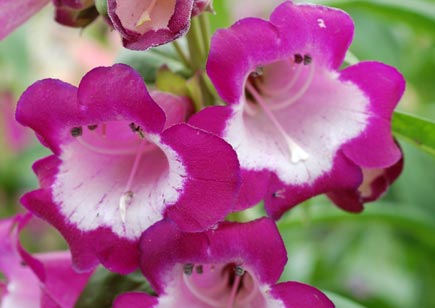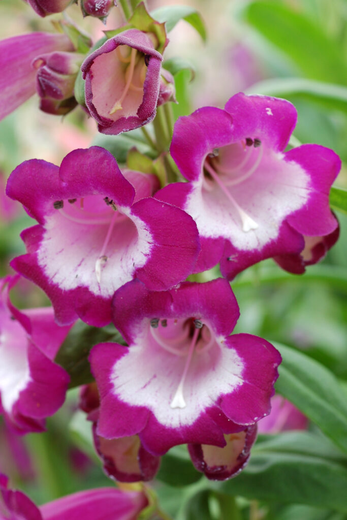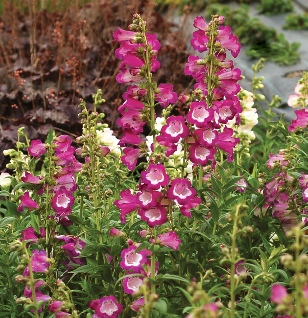 One of the interesting aspects of plant selection is the ability to take a well known and loved variety and breed something new and special, enhancing the traits of the parent! Penstemons are well known and reliable cottage perennials, but take a closer look at the Taffy Series! Grape Taffy produces large bell like blooms over 2 months of flowering with multiple spikes on a fuller bush than older penstemons. Flowers have large purple mauve lips with a striking white throat for dramatic contrast. Also available are Blueberry Taffy (Lavender Blue with White Throat) and Strawberry Taffy (Pink with White Throat) Plant in clumps for a romantic cottage effect!