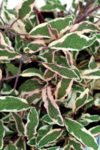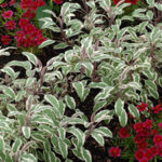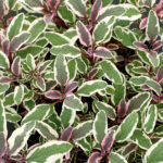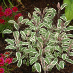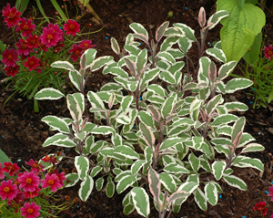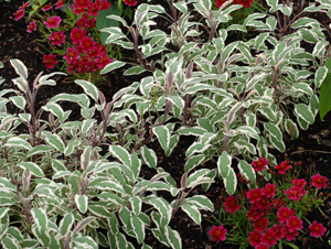 but it is also an edible, culinary variety of sage, providing a dual role as part of the kitchen herb garden. Brilliantly variegated ‘Silver Sabre’ has a cleaner variegation and a better habit than the older variegated type. Foliage is lovely as a crisp and striking variegation of green and cream, with luscious pink tones in cooler weather. These low mounds are at home on the patio, vegetable garden, or in mixed borders.