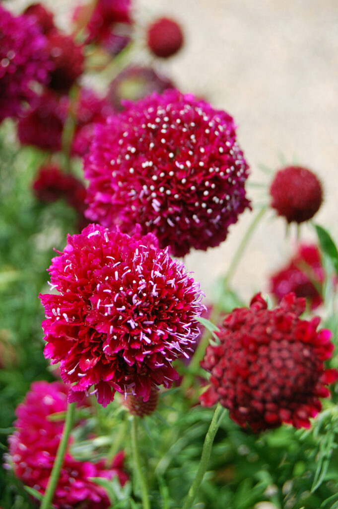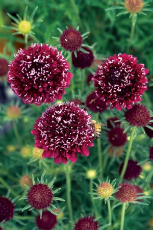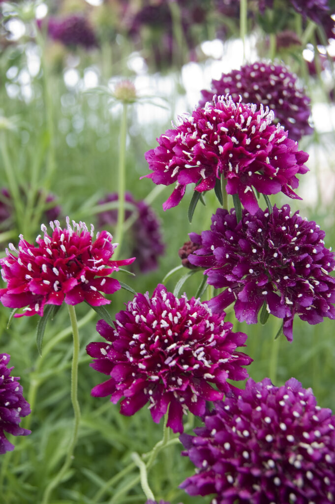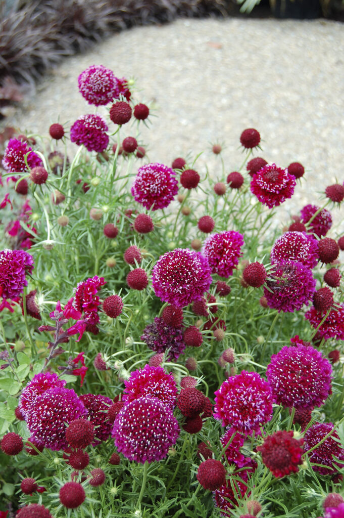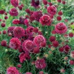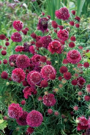 A new and intense darkest mauve Scabiosa for a sun loving easy care perennial. Large, striking pincushion flowers flecked with white are held on sturdy upright stems combined with a bushy, robust habit. Very free flowering blooming continuously from late spring to frost. This is a striking new perennial and a personal favourite, highly recommended. Scabiosa ‘Crimson Clouds’ flowers profusely in summer, and responds to a trim once flowering has lessened. Vigorous grower prefers full sun and plenty of moisture in the drier months. Attractive to butterflies. Will benefit from a good feed of slow release fertilizer in Spring. It is a big feeder and needs a decent sized container and plenty of water if you are going to plant it in a pot! Remove spent flower heads to prolong flowering.