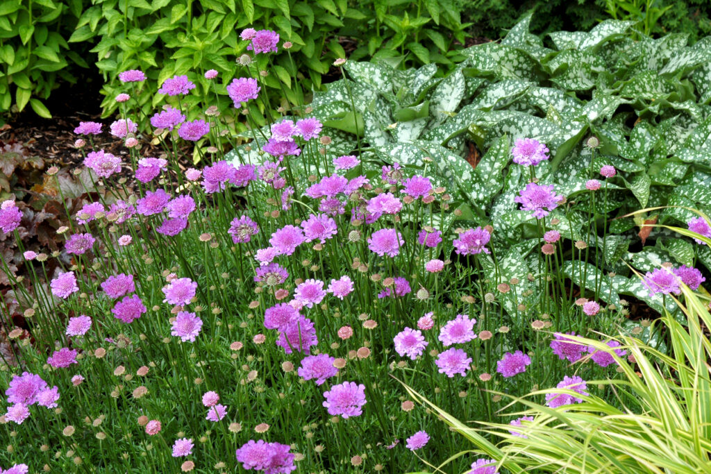 A new and intense colour for a sun loving easy care perennial. Large, vivid violet pincushion flowers are held on sturdy upright stems combined with a low mounding habit. Very free flowering blooming continuously from late spring to frost. Forms a compact mat of mid-green foliage. Scabiosa ‘Vivid Violet’ has shown good mildew resistance in comparative trials. Holds good health and disease resistance right through the growing season unlike older varieties. Vigorous grower prefers full sun and well drained site. Attractive to butterflies.